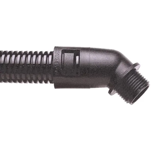 45 DEGREE CONDUIT FITTING, FIXED EXTERNAL MALE THREAD, NOMINAL CONDUIT SIZE 21MM, M20 THREAD, BLACK