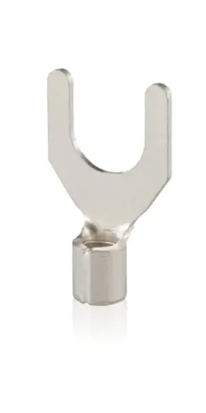 NON-INSULATED FORK TERMINAL, WIRE RANGE 4-6MM2, LENGTH 18.5MM, WIDTH 9MM, DIAMETER 3.4MM, STUD SIZE 4MM, COPPER, TIN PLATED